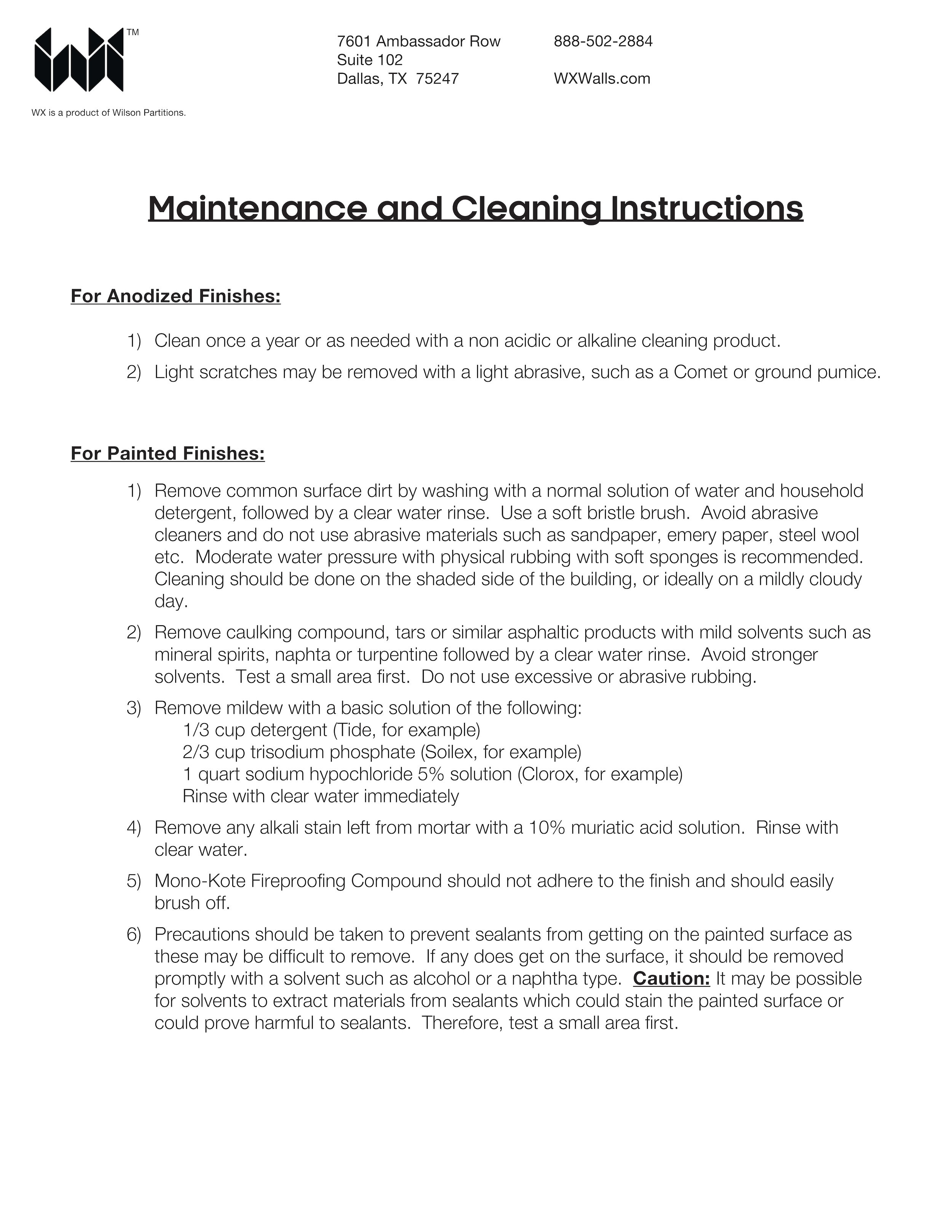 Digital ResourcesDownload WX™ demountable walls literature and technical information below. WX Brochure Frameless System Cut Sheet Center Line System Cut Sheet Offset System Cut Sheet Double-Glazed System Cut Sheet Door Cut Sheet Hardware Cut Sheet Standard Door Stains Maintenance & Cleaning Instructions Glossary of Terms